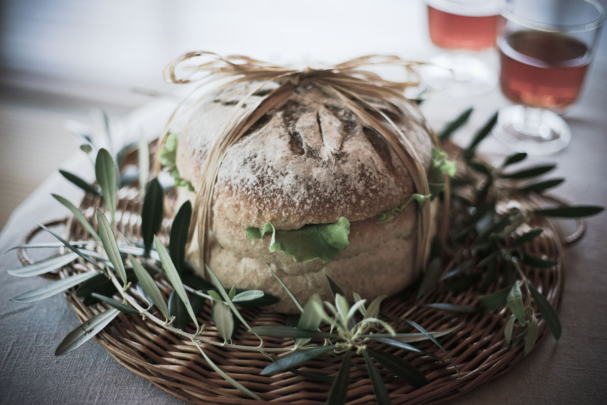自家製カンパーニュの蓋を開けると、中にサンドイッチが!