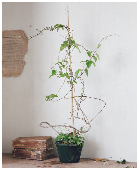 人知れず樹に寄り添っていた蔓草や草木を想い、その場所を再現するように作られた鉢植え。