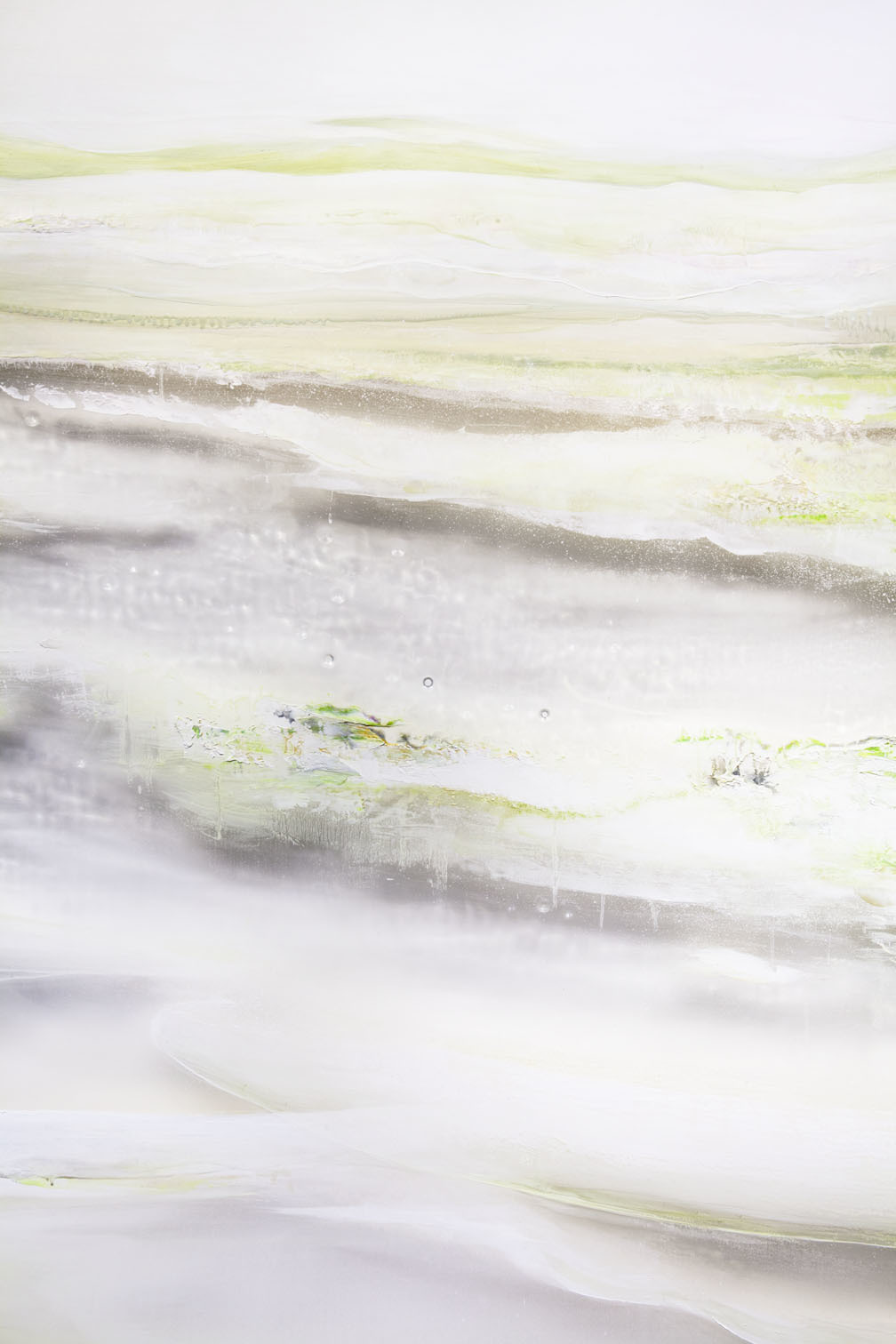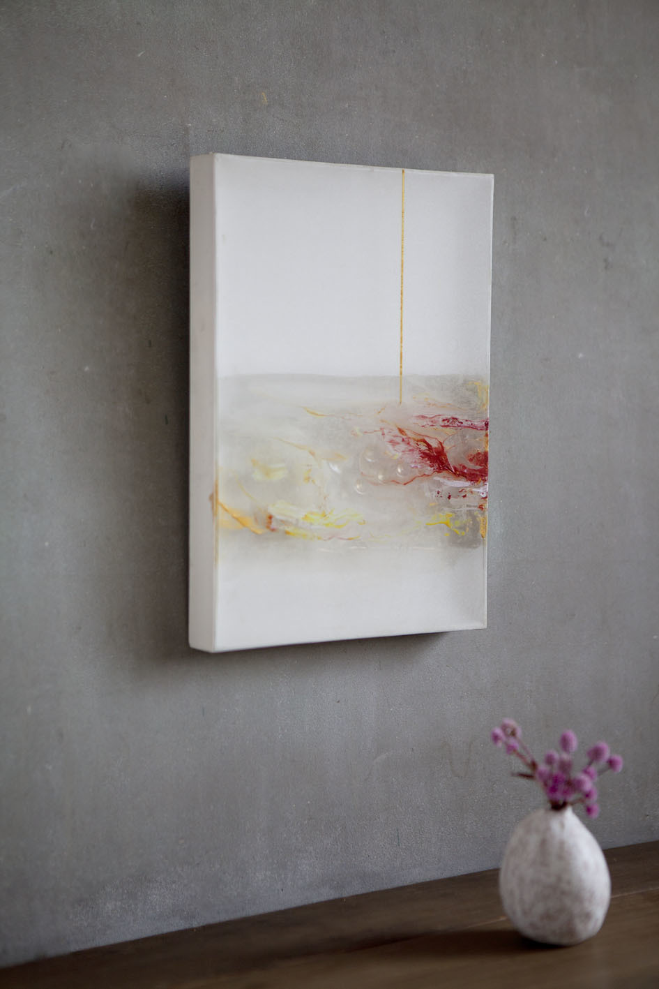 私たちは窓をみる時どこをみているのでしょうか。ガラスの表面や窓のつくりでしょうか。それともその向こう側にいる人や風景でしょうか。絵も同じ様に私たちは絵をみている時どこをみているのでしょうか。絵具の表面や紙や布やカンバスのつくりでしょうか。それともその向こう側に描かれている事でしょうか。私たちはみるという事で何かを探していると思うのです。私の作品は支持体自体を透過させたり、絵具の物質が現れたり、ぼんやりと像を結んだりと視覚や知覚をゆさぶります。そしてそのゆさぶりの中にその何かが見つかるのではと思っています。