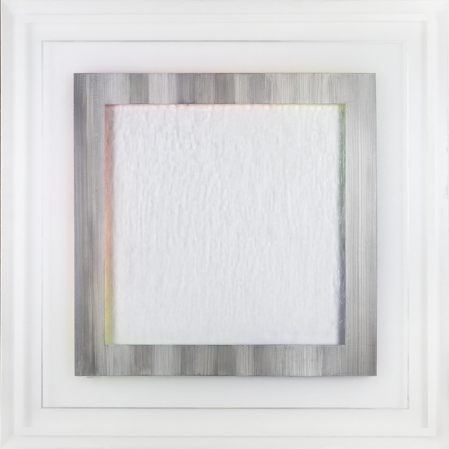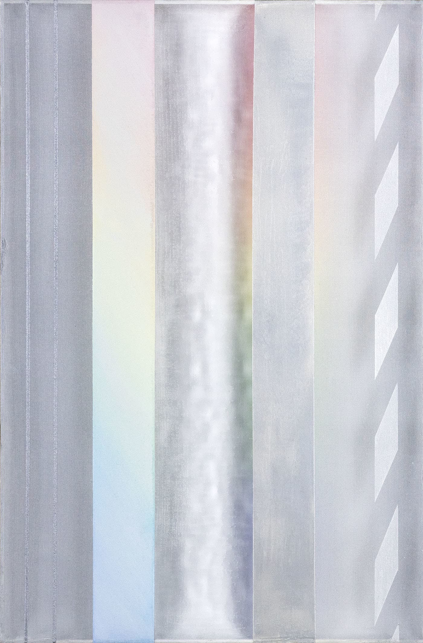 私にとり作品をつくることは関係性を見つめることです。そこには、世界との繋がりが現れてくると感じるからです。本展では、光と色と物質の関係性をテーマにした作品を展示します。展示タイトル『波粒のあいだ光陰をつなぐ』は、光の二重性を示す「波と粒」と、「光と影」だけでなく「日と月」や「時間」をも表す「光陰」という言葉を用いて、人は光や色を知覚する時は視覚で瞬間的に捉えるだけでなく、より広がりのある空間や時間との繋がりを感じ取っているのではないか、という問いを込めました。色や物質は単独で存在するのではなく、光の多様な 振る舞いによってみえ方や性質が変容し、互いに影響を与え合います。私 は、その光の振る舞いを作品の中に取り込み、光の性質がもたらす現象を通して、世界との繋がりを視覚化したいと制作しています。
