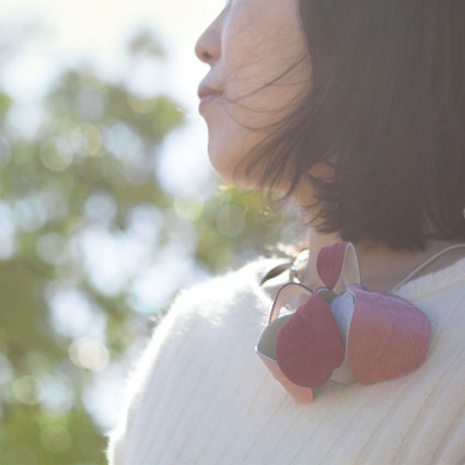 侶居の第二回企画展は、「ウェアラブル(身につける)アート」と題して、シューズデザイナー 捧 恭子のアクセサリー展を開催します。本来靴で使用する丈夫で滑らかな革を使用したアクセサリーです。