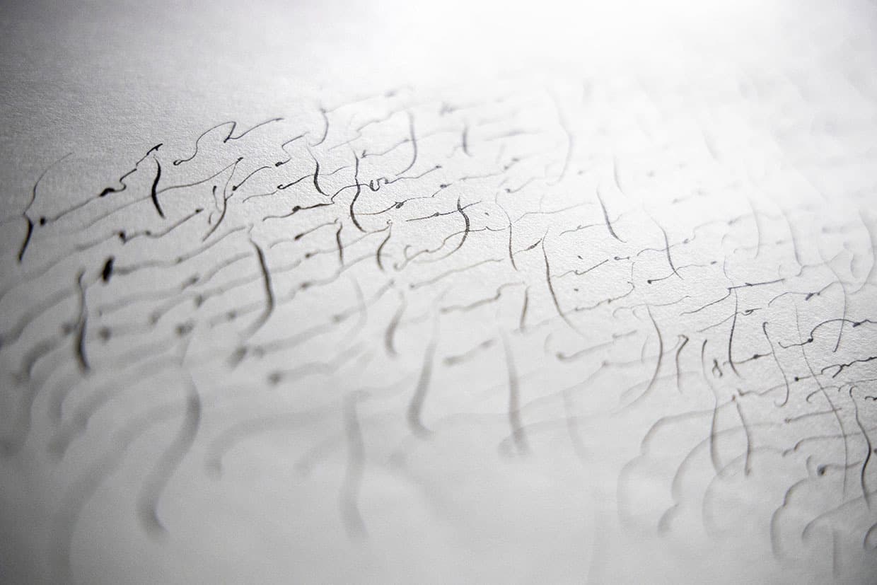 古来から歌い継がれてきた和歌に詠まれた、四季折々に移ろう自然の美。多彩な言葉の表現。その美しさに身を委ねると、ただ呼吸をするようにペンが自然に動く感覚になります。インクの香りとペンが紙の上をなぞる音だけが心地よく響き、私にとってその時間は瞑想のようでもあります。