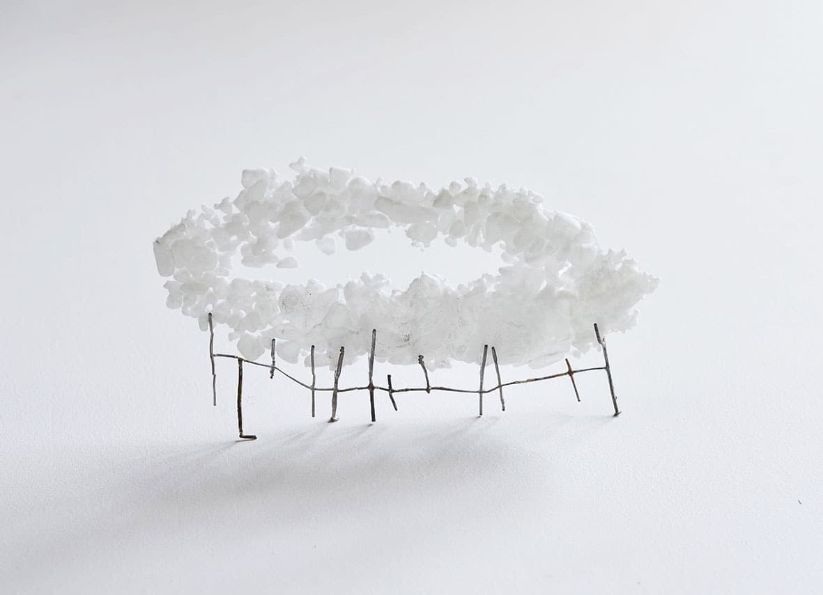 杉村紗季子は、木工家の父や裁縫好きの祖母、また常滑という場所柄、様々な作家たちに囲まれた環境の中育ちました。漠然としたものづくりへの方向性を持ちながら東京芸術大学へ入学し、「鋳金」に出逢いました。美しさと怖さを併せ持つ“溶けた金属”が生み出す、魅力的な表情。ガラス、金属線、蝋、布、自ら漉いた紙などがそれに寄り添い、まるで光を纏うような繊細で情緒的な作品になっています。この機会にぜひご覧ください。