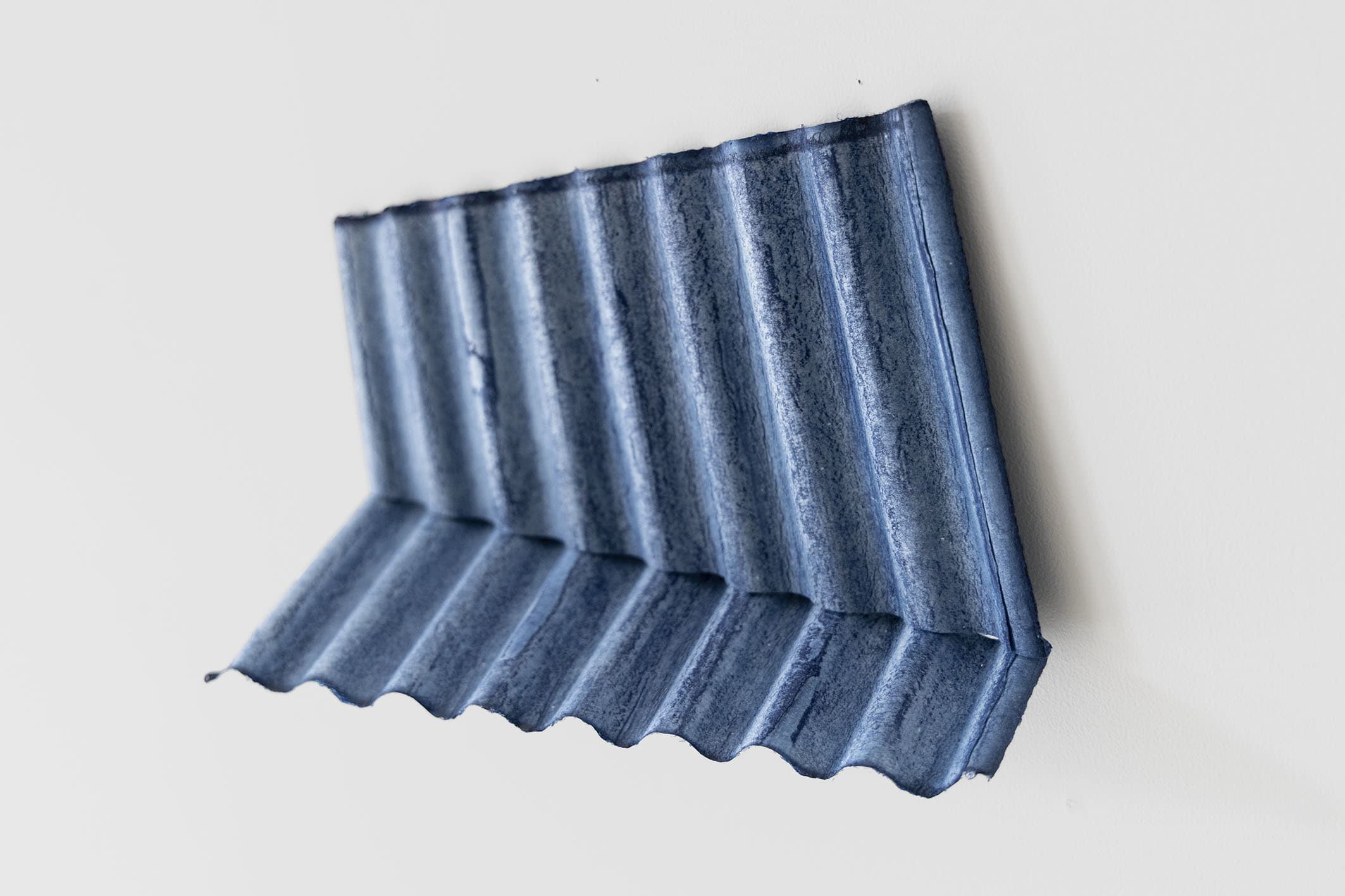 針金で骨格を作り繊細であり強靭で柔軟な和紙を貼り合わせて造形物を作っています。今回の「波景(はけい)」展では空気や音の波動でゆっくり動くモビール、波板をモチーフにし規則的なかたちを用いて波の景色をかたちづくります。